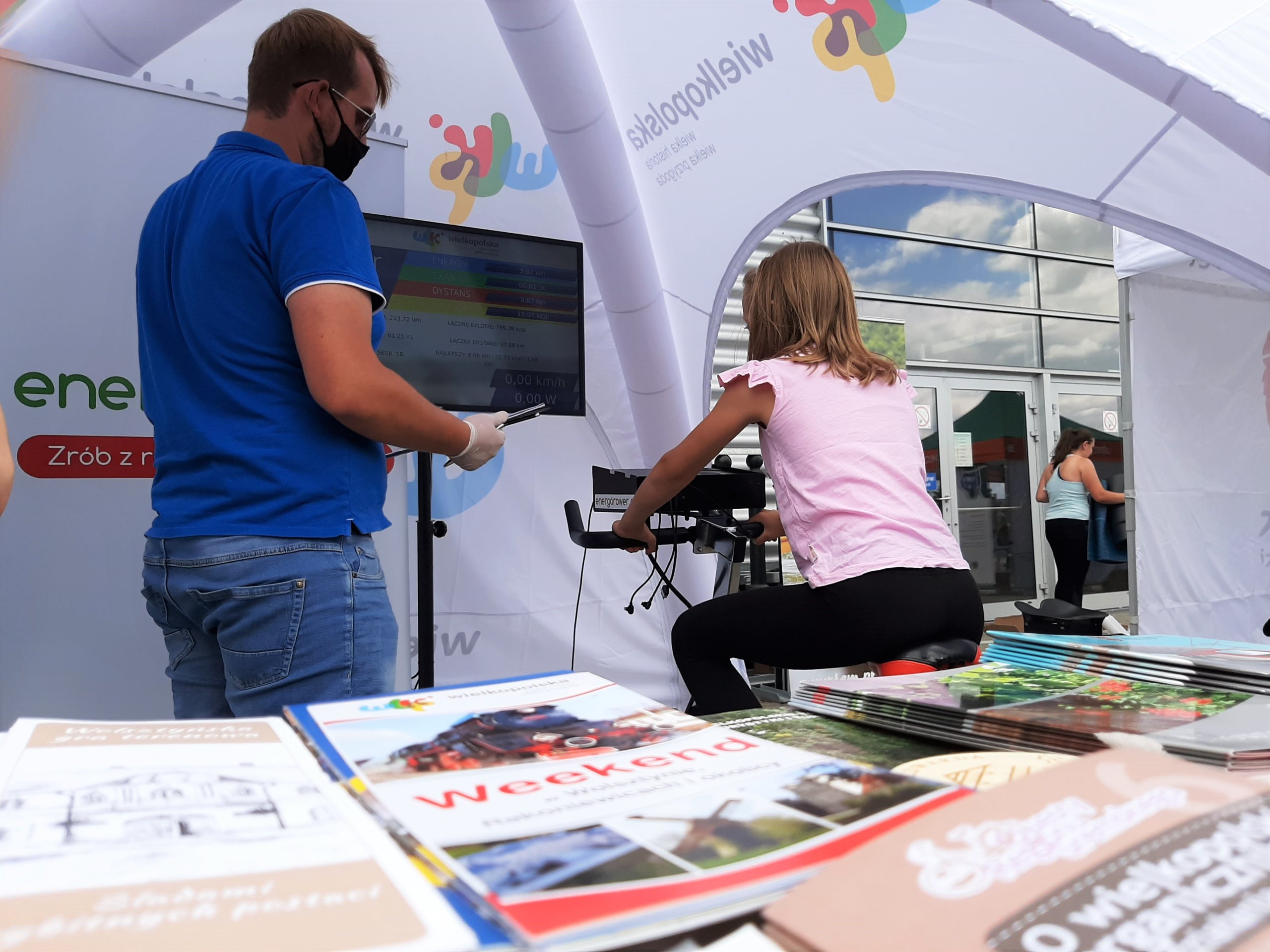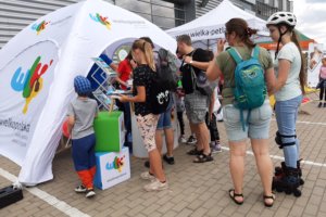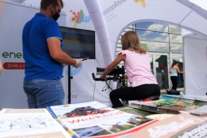 Letni Targ Rodzinny to impreza skierowana do rodzin z dziećmi, szukających urozmaicenia podczas lata spędzanego w mieście. Do ich dyspozycji było wesołe miasteczko, wyścigi na rolkach, joga dla początkujących i strefa gastro. Na naszym stoisku przygotowaliśmy dla odwiedzających dodatkowe atrakcje – trenażer rowerowy oraz trenażer kajakowy, dzięki którym każdy mógł sprawdzić swoją kondycję przed wycieczką za miasto. Co więcej, osoby korzystające z trenażera rowerowego brały jednocześnie udział w konkursie z atrakcyjnymi nagrodami, a podstawą do klasyfikacji i ustalenia zwycięzców był dystans przejechany w czasie 1:30 minuty. Oczywiście taka aktywność fizyczna była tylko pretekstem by zachęcić do wyruszenia na wielkopolskie szlaki rowerowe i kajakowe, a w tym jak zawsze pomocne były nasze foldery, mapki i inne materiały.