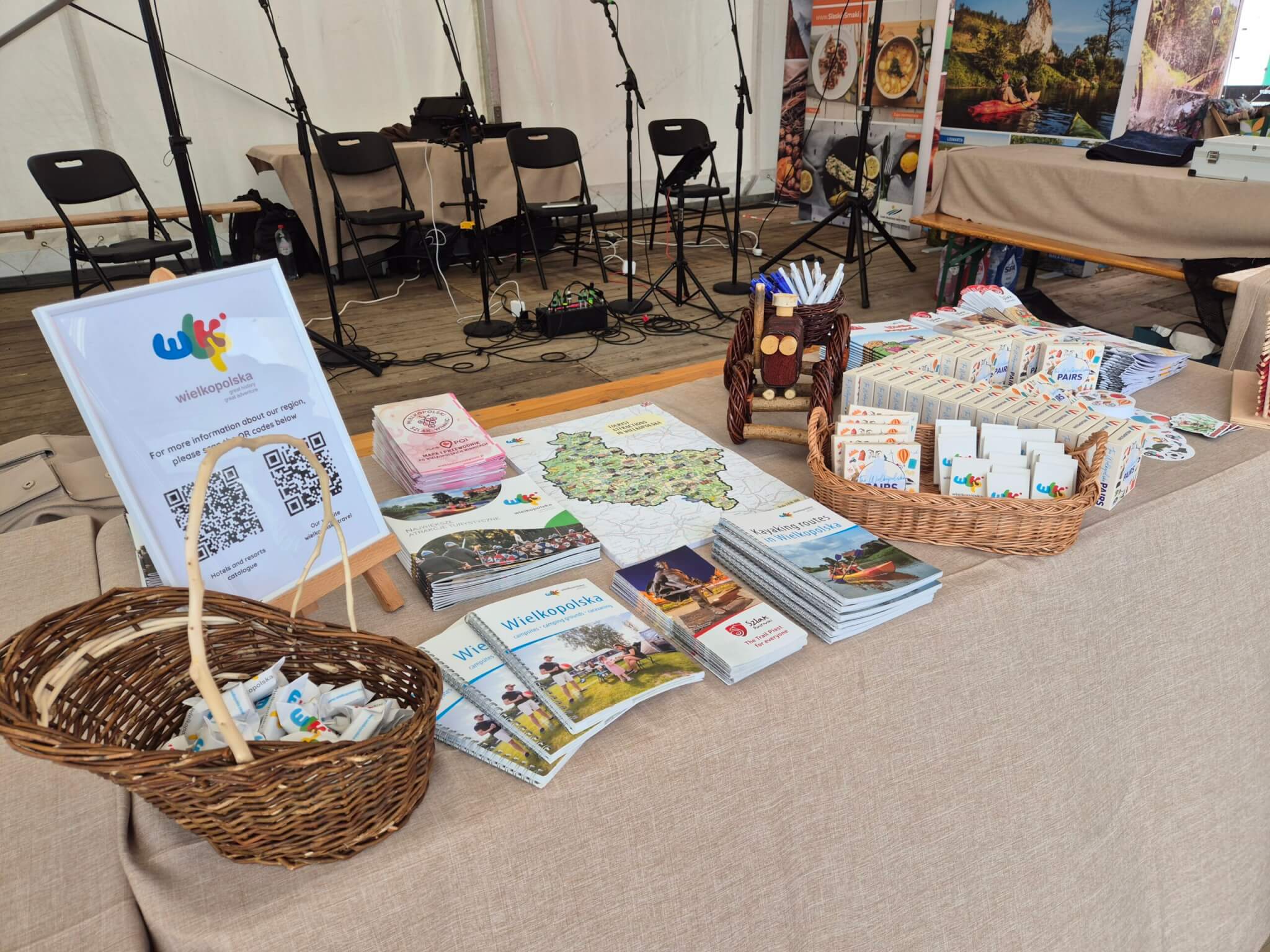 Dodatkowo, przygotowaliśmy atrakcje dla dzieci, w tym kolorowanki z bohaterami „Kajko i Kokosza” i oprócz tego zaprezentowaliśmy bogatą ofertę turystyczną i kulturalną regionu, a także lokalne rękodzieło z nowotomyskiej wikliny.